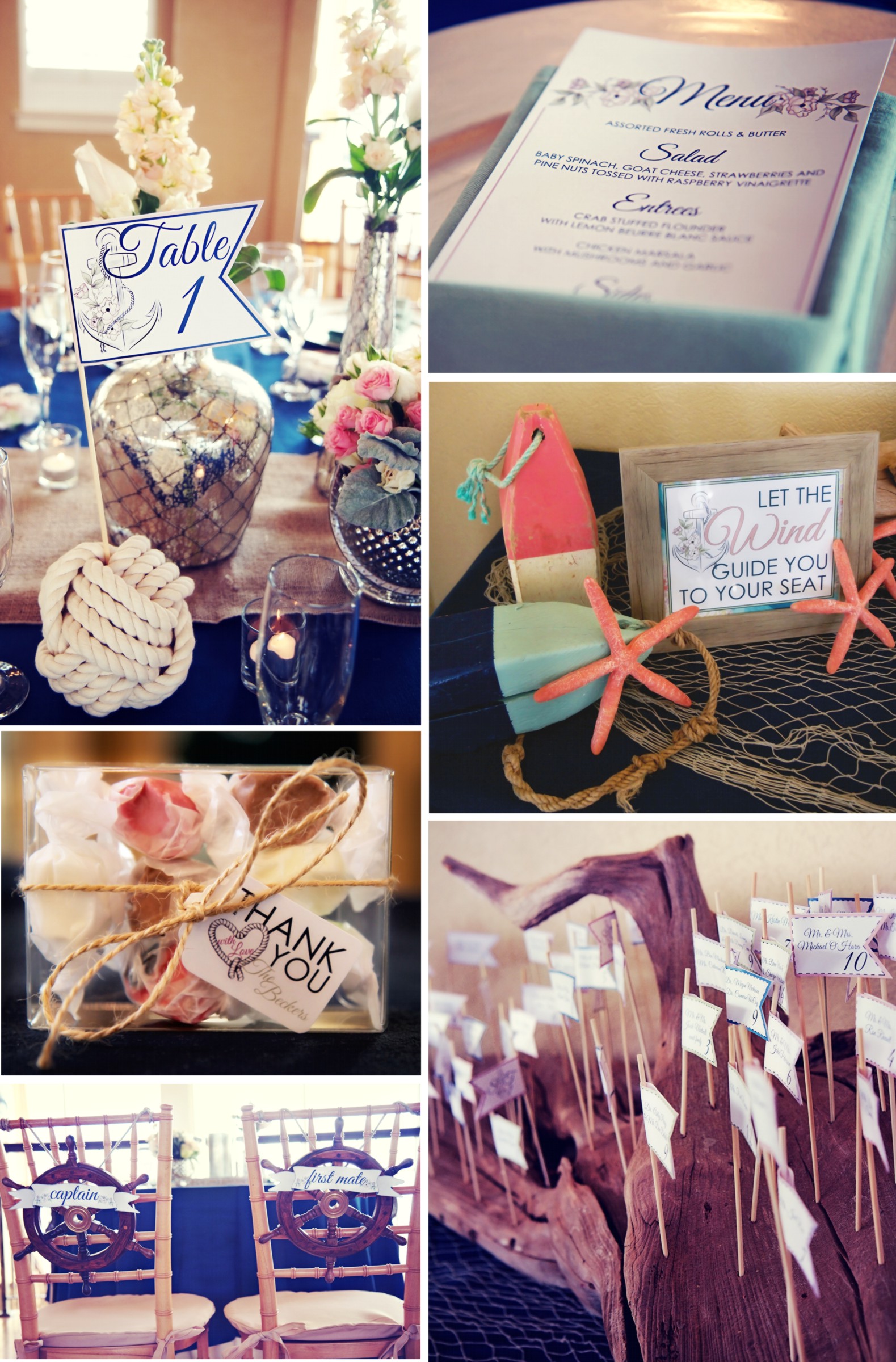 Words cannot express how lucky I was to meet this amazing couple from California…THE happiest, sweetest, coolest people on earth. We talked for hours on the phone throughout the whole planning process and finally got to meet a few months before the wedding (though I already felt like we had been friends forever). Suzanne and Tristan wanted a classy nautical wedding similar to a few of our inspiration boards they saw online. After a few different personalized inspiration boards, we decided to move forward with this one: