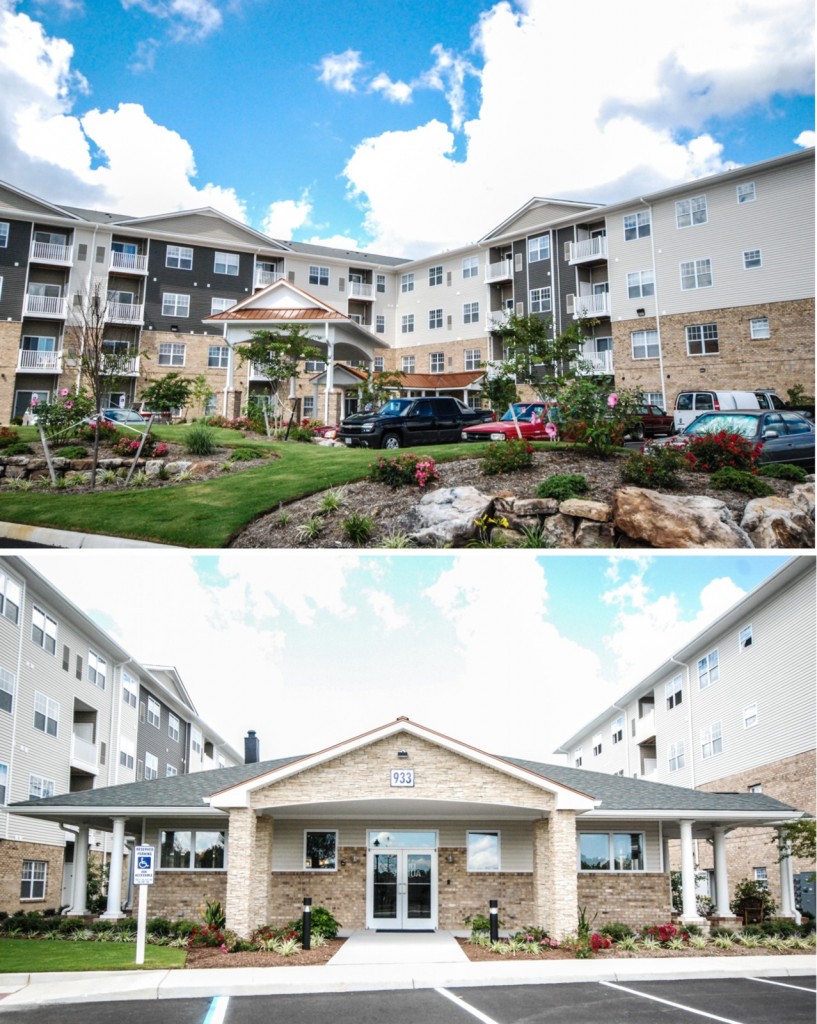 I ordered the furniture from Haynes and Interior Visions and then shopped alllllll overrrrr Hampton Roads for budget accessories at every TJ Maxx, Marshall’s, Tuesday Morning, Ross, and Garden Ridge. While that may sound like it didn’t take much time, it actually took the better part of the last 6 months… and finally, the spaces in 900 Acqua are ready for me to show off. The exterior consists of 3 buildings, 2 apartment buildings and a central clubhouse.